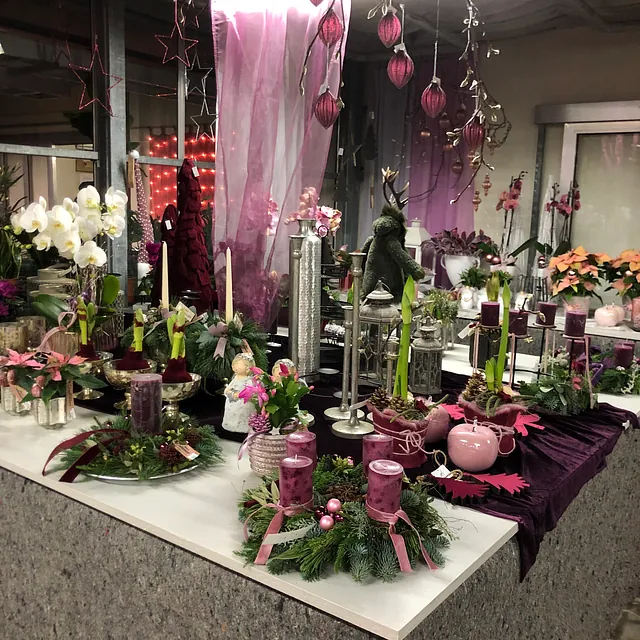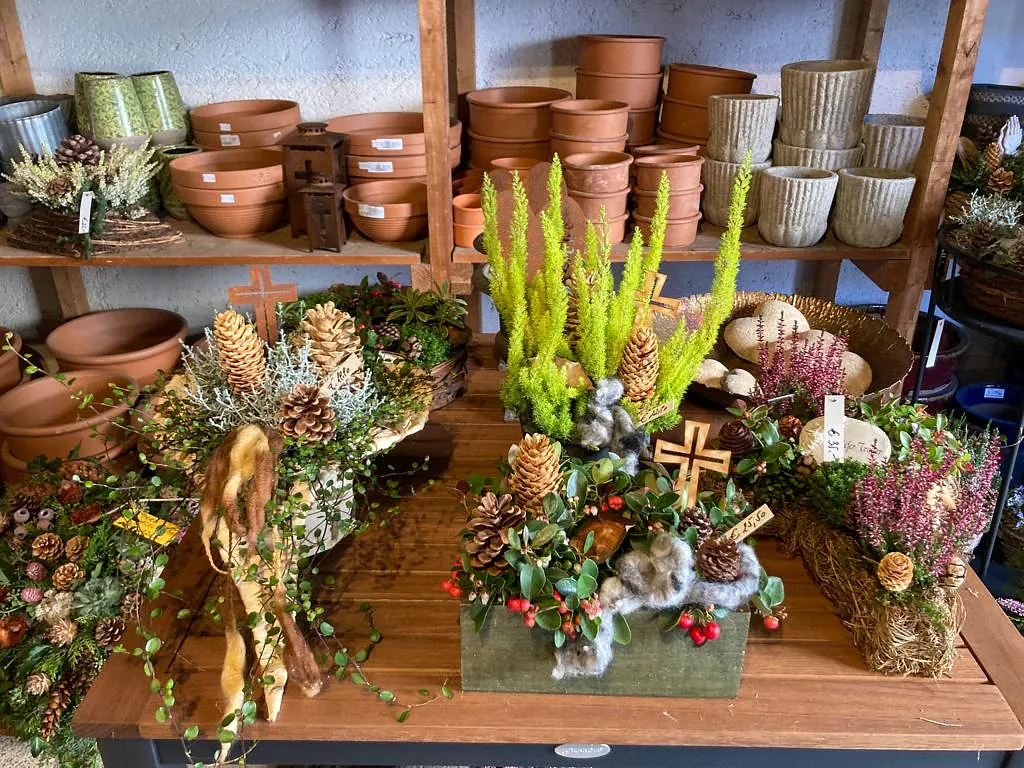 In unserem Blumengeschäft finden Sie Übertöpfe, Glas- und Geschenkartikel, Blumenerde, verschiedene Dekorartikel rundum Haus und Garten sowie ein großes Sortiment an saisonalen Blumen für spezielle Anlässe wie Allerheiligen, Ostern, Muttertag, Valentinstag oder Weihnachten.